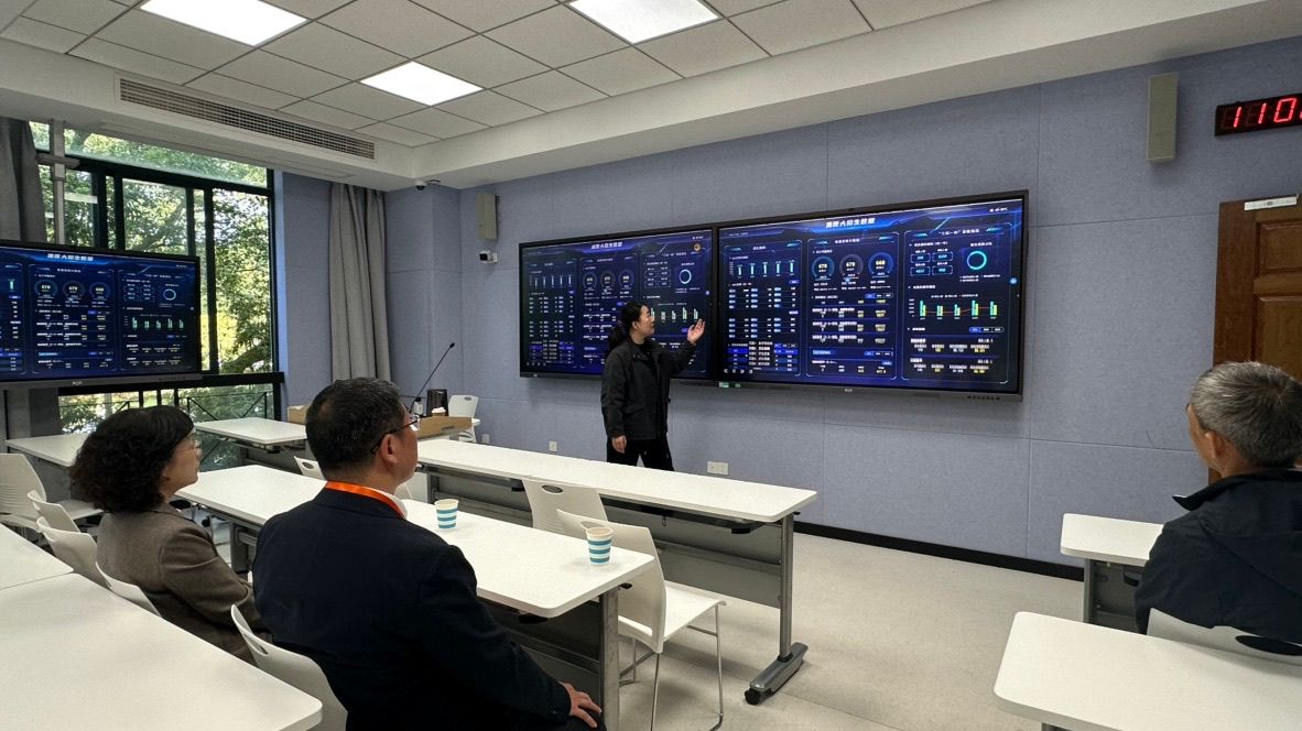 亮点呈现,展示智慧教学成果。为全面展现学校教育教学信息化建设成效,信息技术中心向评估专家系统演示“温医大数据大屏”“医大学堂”在线平台及智能录播系统,多维度呈现学校在智慧教学、数据治理等方面的探索与实践。