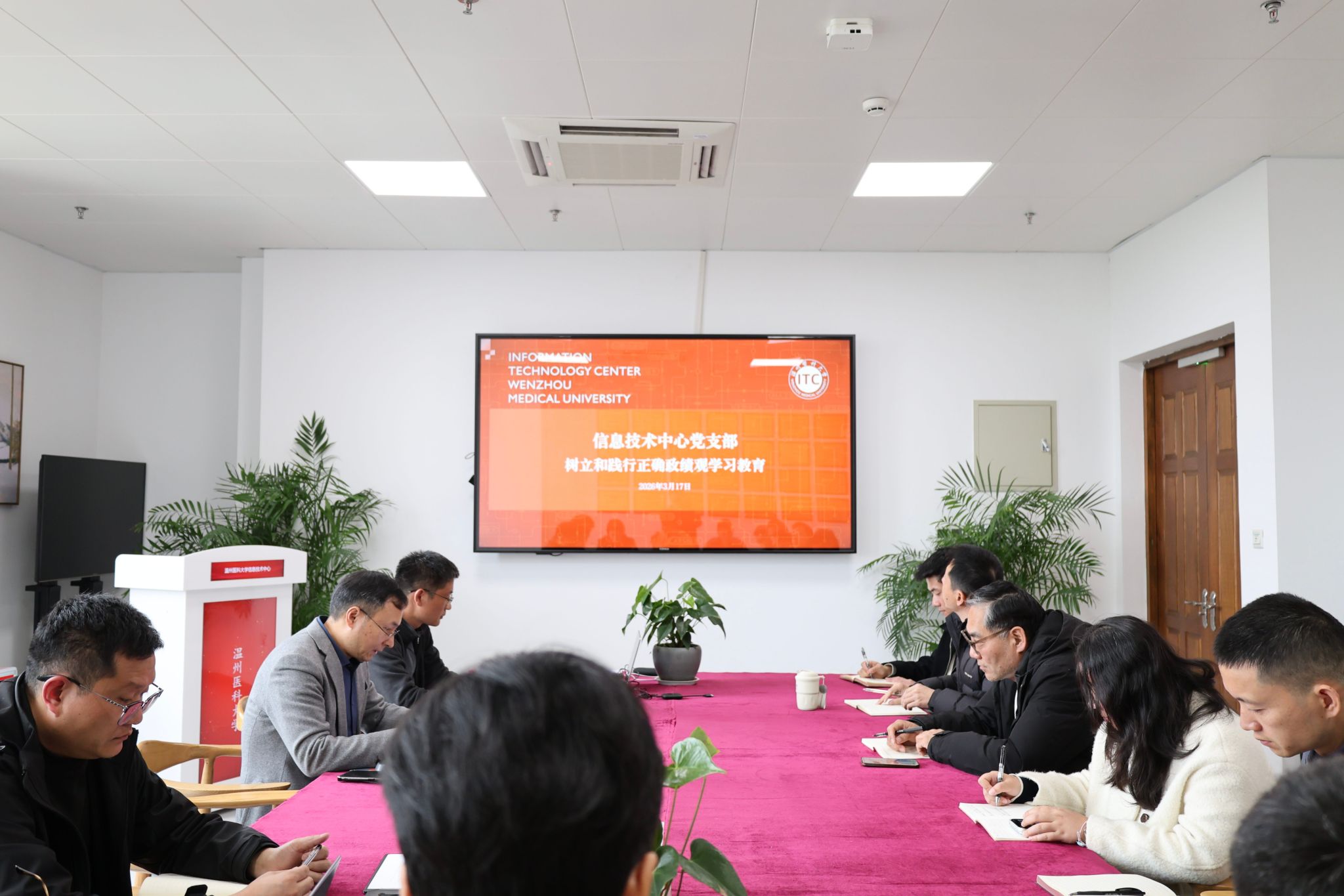 3月17日下午,信息技术中心党支部在茶山校区生物医药科研楼北五楼东会议室召开专题会议。党支部书记王朝杰主持会议,中心全体党员和入党积极分子参加学习,会议严格按照既定议程有序开展。